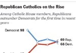 The Pew Research Center released information January 22 showing more Catholics identify with Republicans than Democrats in the U.S. House of Representatives.The margin is only one, 69 to 68, but the trend is noteworthy.