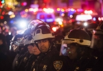 Police in Los Angeles have detained one man as a possible suspect and are searching for a second on Monday in connection with an apparent sniper attack on two officers in their patrol car, police said.